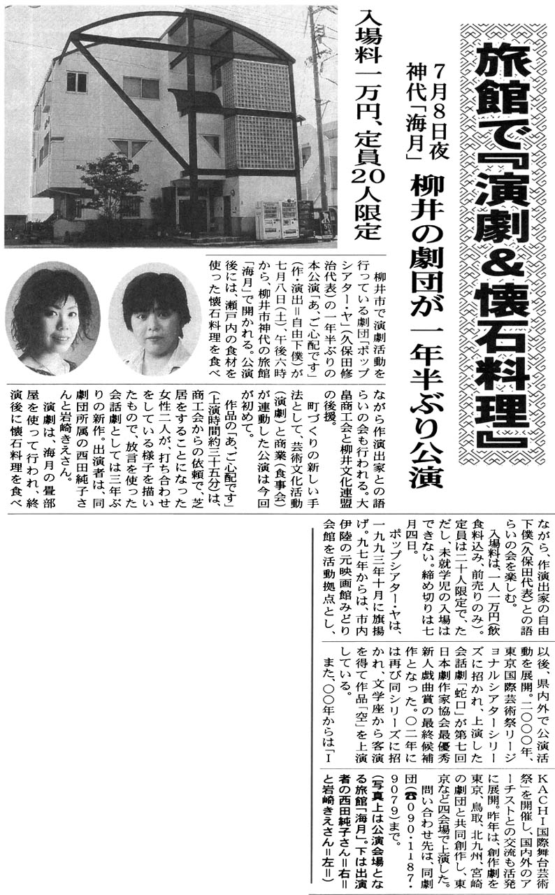 再演・あ、ご心配です (2007年2月10日、柳井市神代・旅館海月) 詳細