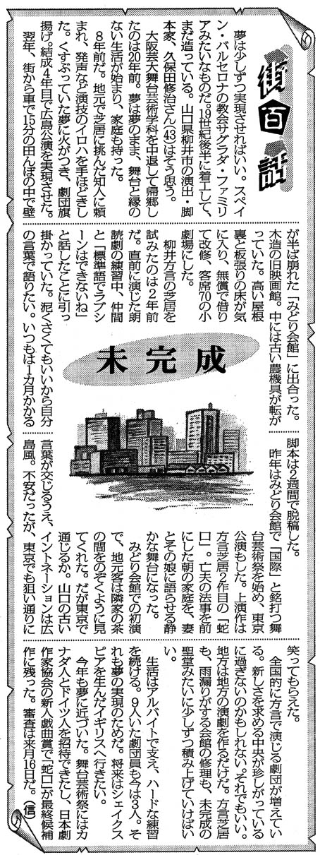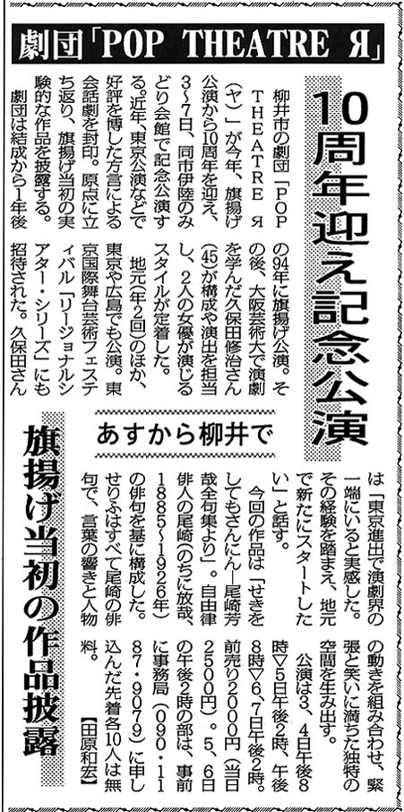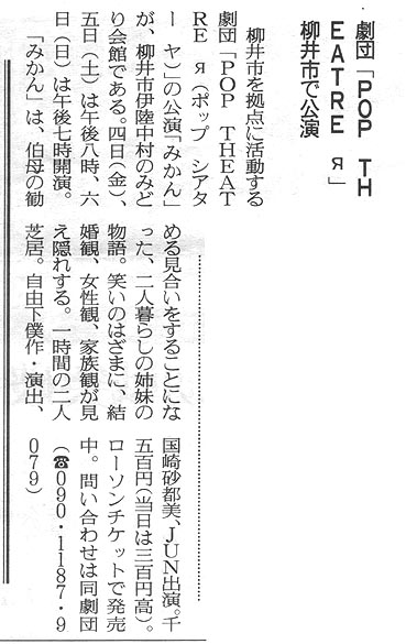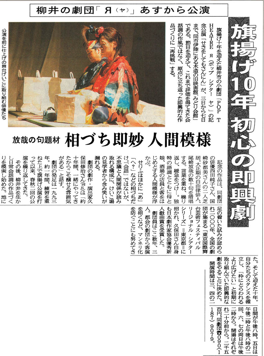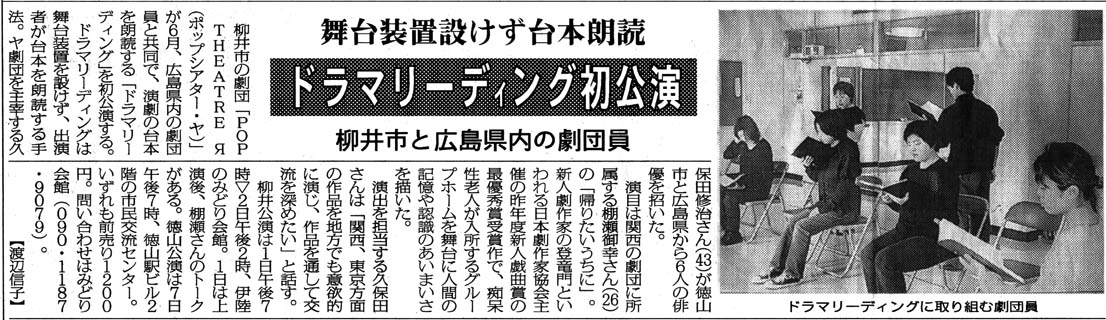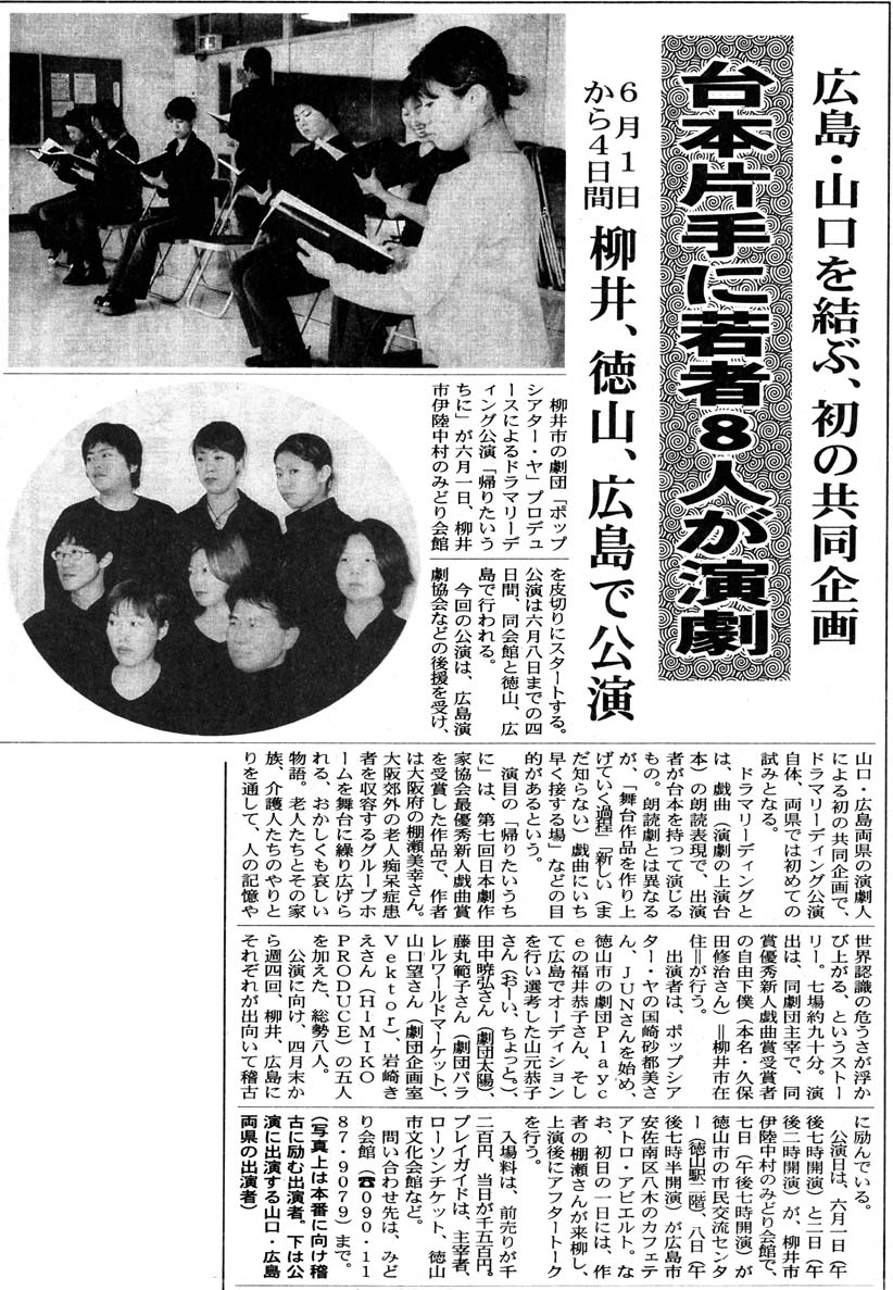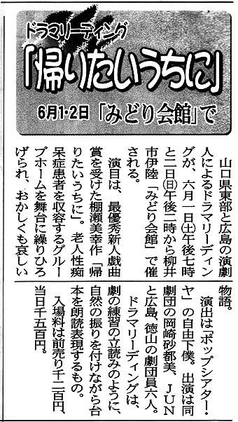 ドラマリーディング・帰りたいうちに (2002年4月、みどり会館・広島・徳山で公演)