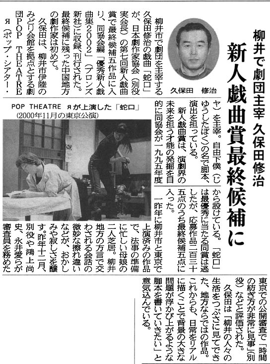 新人戯曲賞(2001年12月)