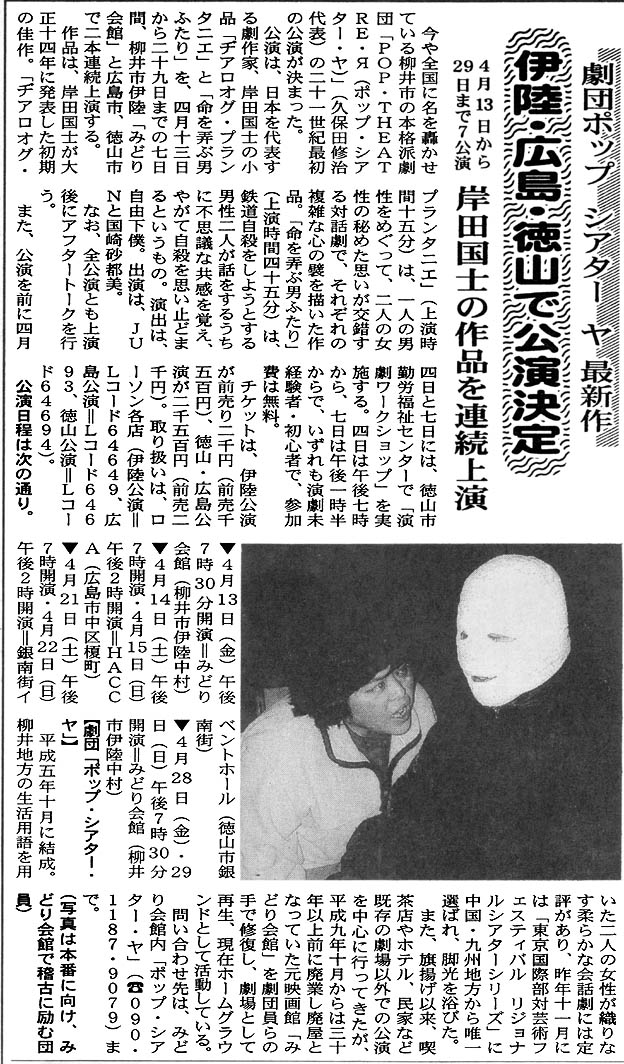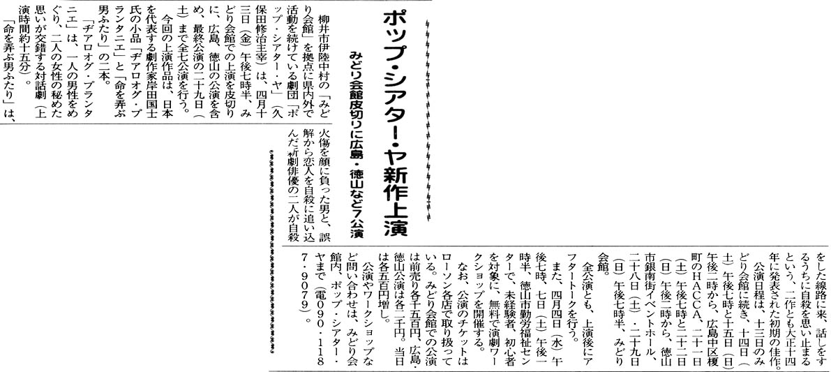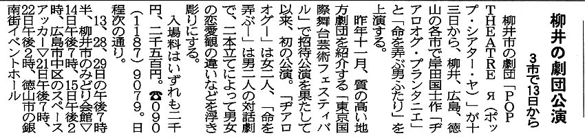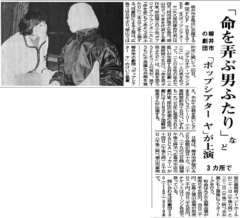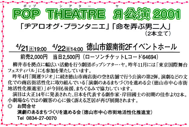 ヂアロオグ・プランタニエ/命を弄ぶ男ふたり(2001年4月、みどり会館・徳山・広島で公演)