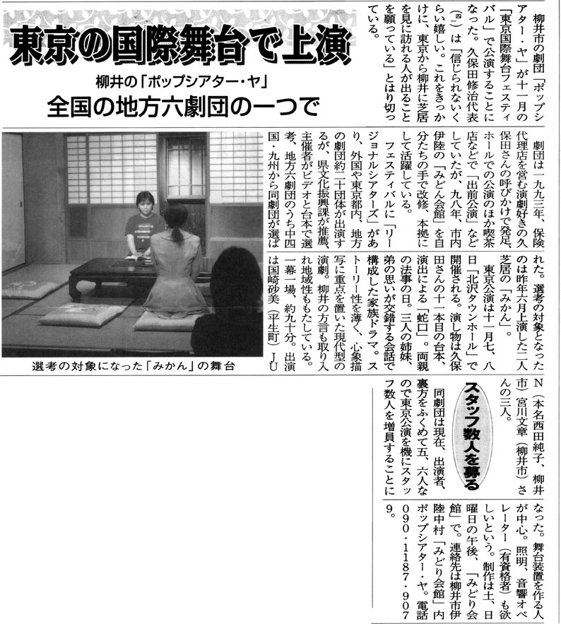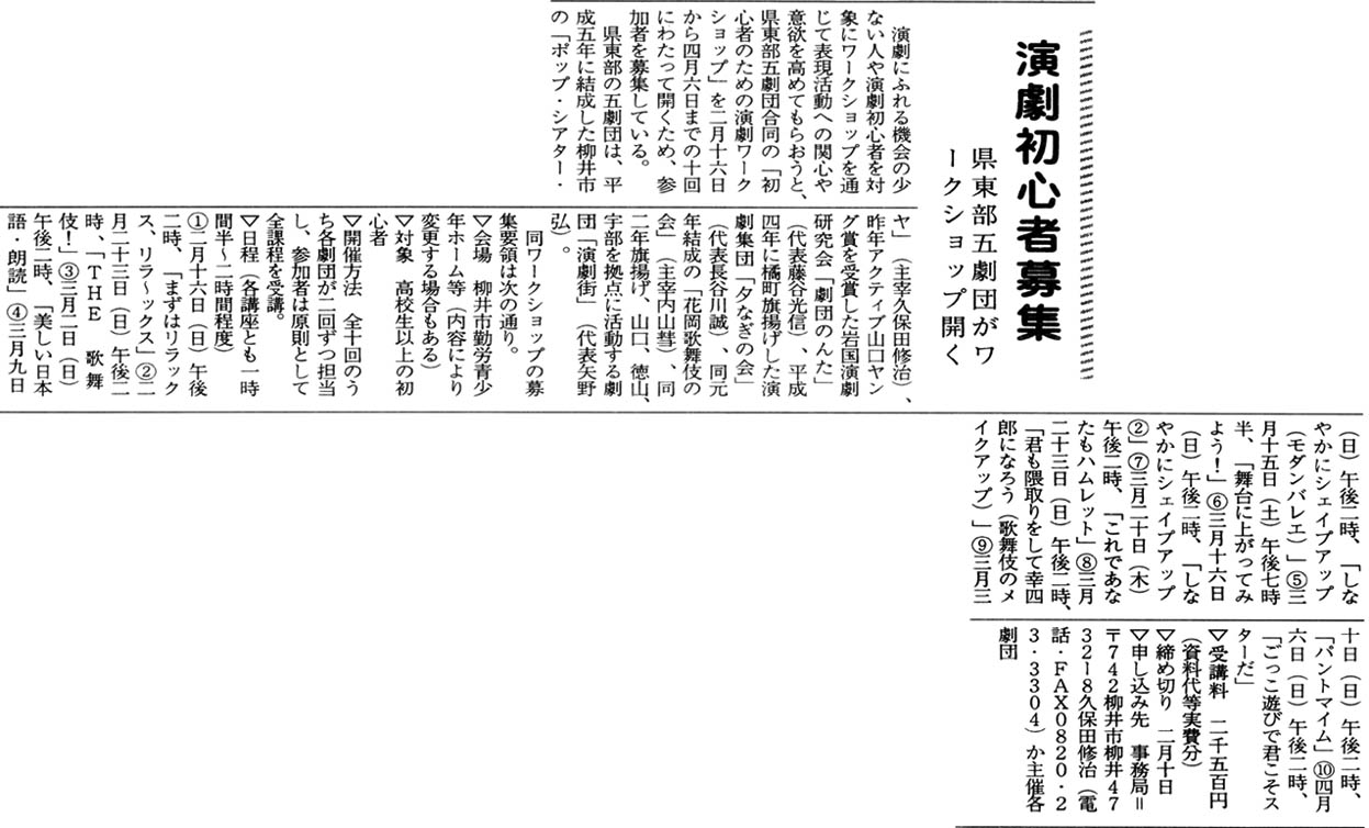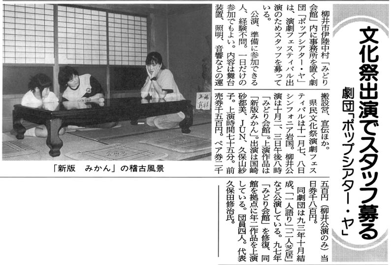 当劇団で所有していない記事がまだまだあると思われます。このページに掲載していない記事をお持ちの方は「みどり会館」までご連絡ください。