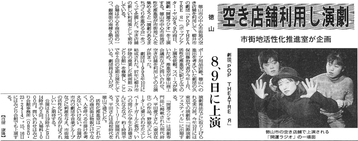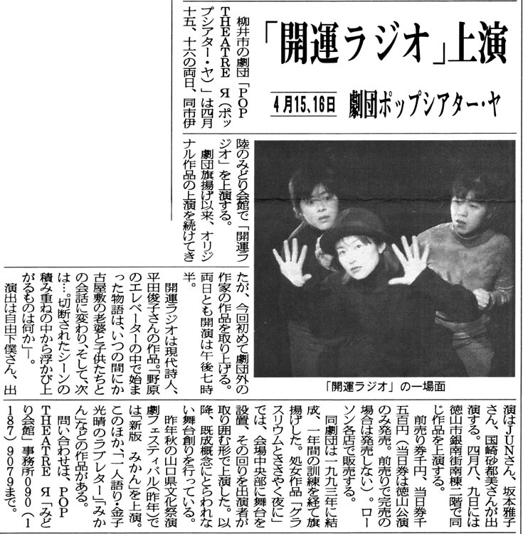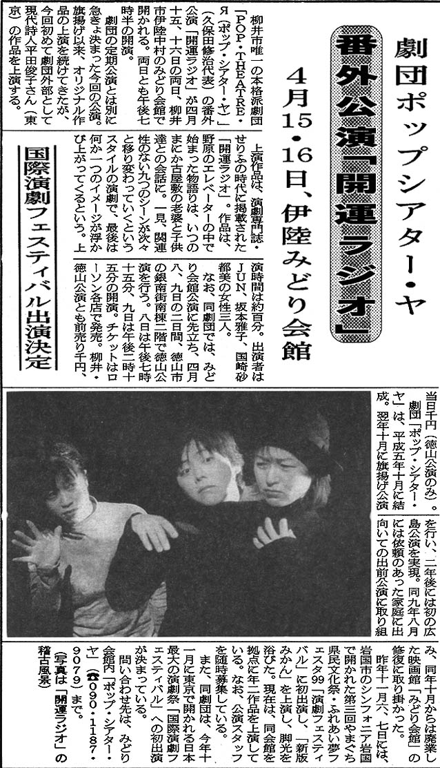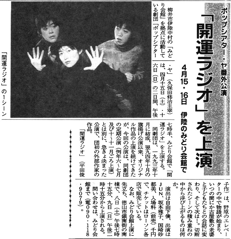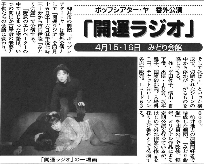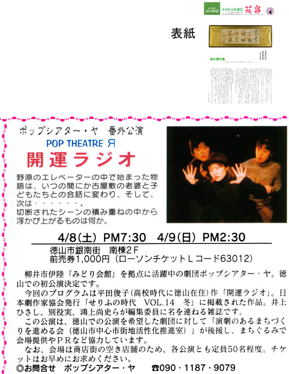 開運ラジオ(2000年4月、みどり会館と徳山市銀南街で上演) チラシ画像 ・ 公演詳細