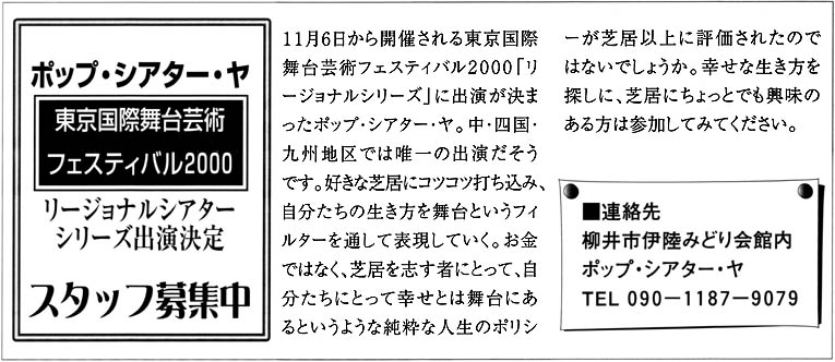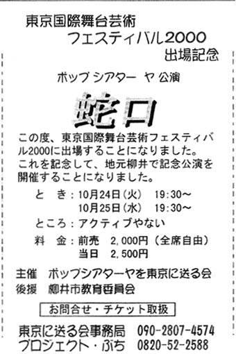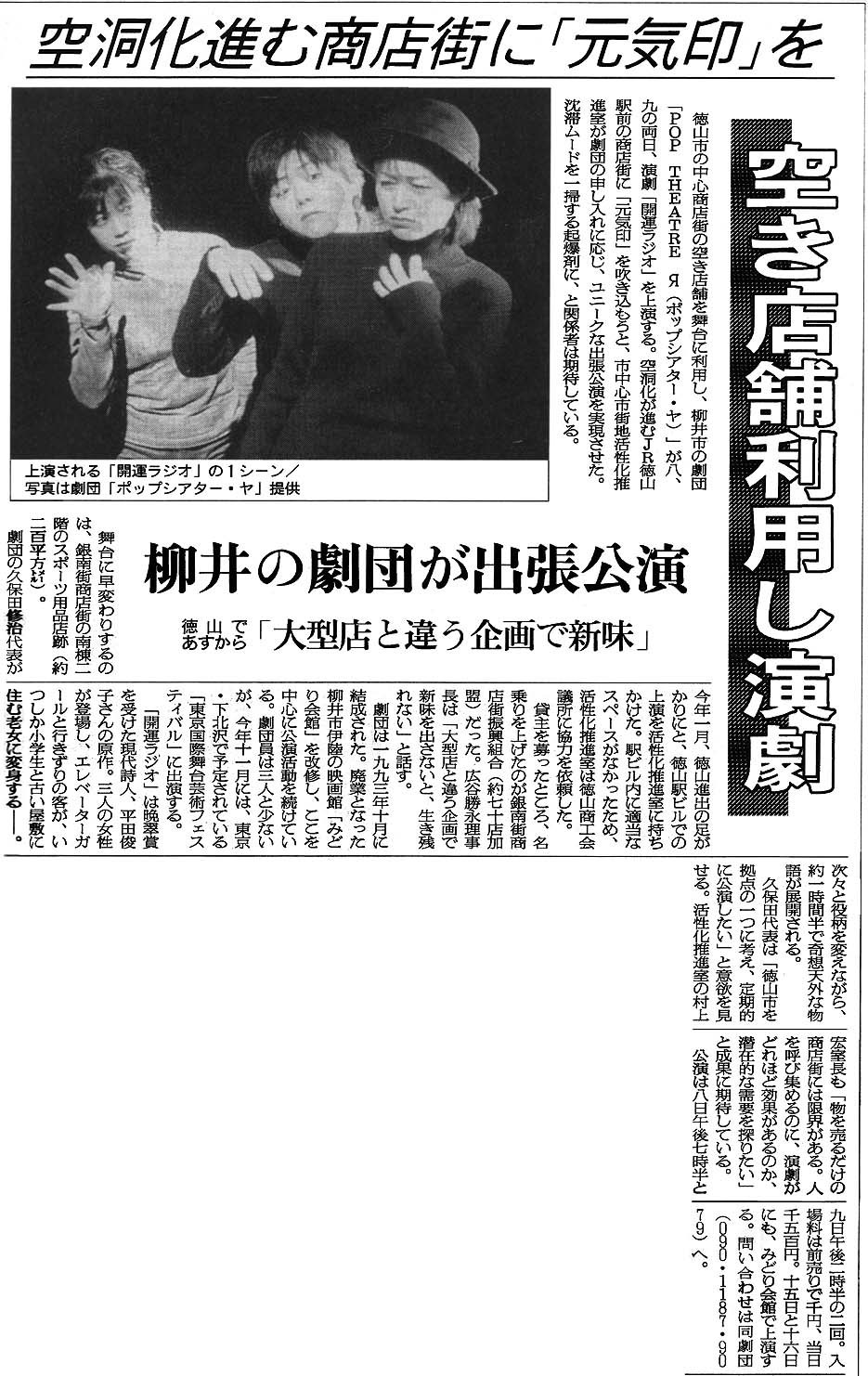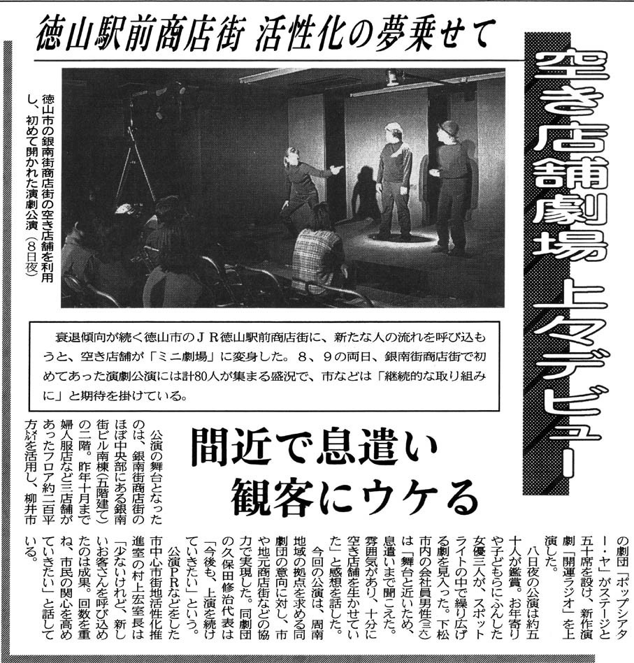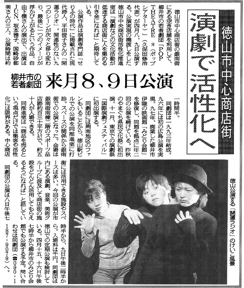 開運ラジオ(2000年4月、みどり会館と徳山市銀南街で上演) チラシ画像 ・ 公演詳細