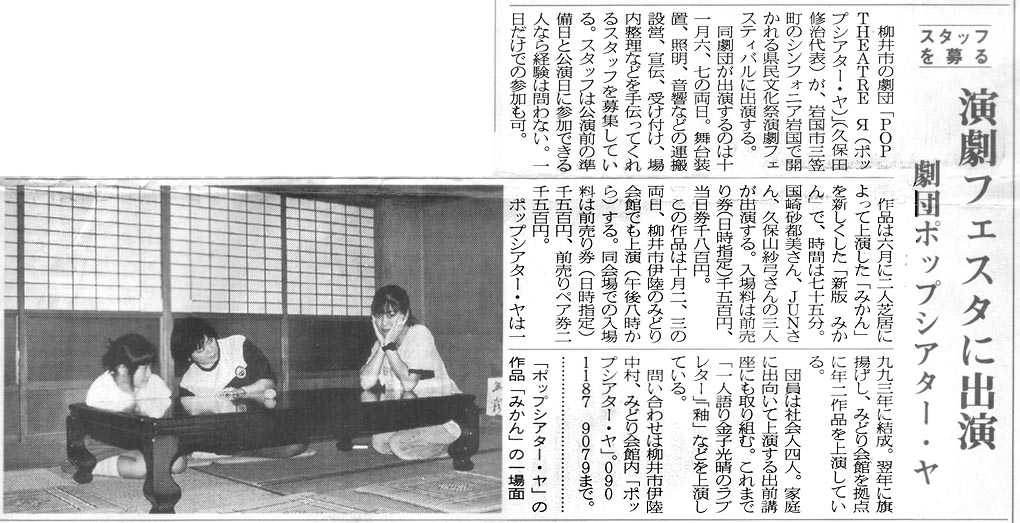 空(2002年9月・12月) みどり会館と東京芸術劇場小ホールで上演 チラシ1 ・ チラシ2 公演詳細
