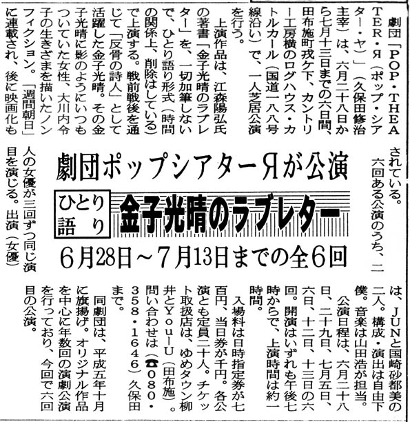 月がみえない(2001年10月〜2002年2月、みどり会館・北九州市・東京で上演)