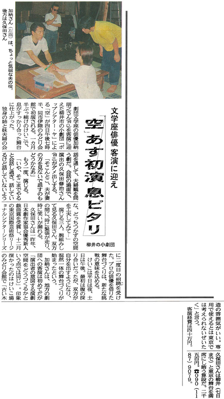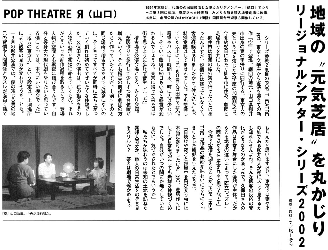 | この作品の上演から3年……広域合併により岩国市は柳井市の隣市となり、米軍・厚木基地機能の岩国移転は現実のものとなろうとしている。 |