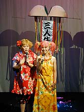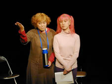この「月がみえない」という作品は、元々は二人の有名女優のために土田英生氏が書き下ろしたもので、原題を「花」という。 事情があって上演されないでいたのだが、リージョナルシアター・シリーズで「蛇口」を上演した際に観に来て下さった演劇ライターのTさん(当時は演劇誌・せりふの時代の編集者)の紹介でウチで上演することになったもの。 みどり会館での上演では、アフタートークのゲストに土田氏を招いた。 写真中央が土田英生氏 |